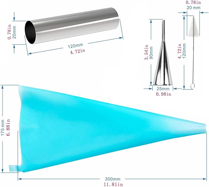 - Package include: 16 pieces of tube shape baking molds, 1 piece of cleaning brush, 1 piece of puff nozzle tip and 1 piece of reusable piping bag.