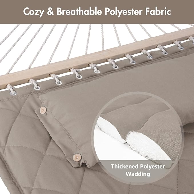 ANOW 2 Person Hammock with 12FT Stand, Heavy Duty Hammock with Stand for Outdoors, 450 LBS Weight Capacity, Light Brown