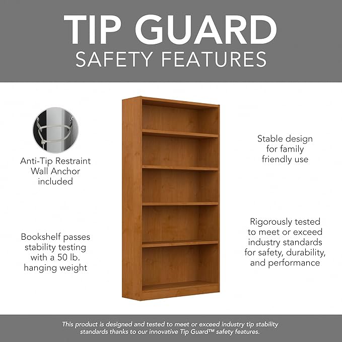 Bush Furniture Universal Tall 5 Shelf Bookcase in Natural Cherry
