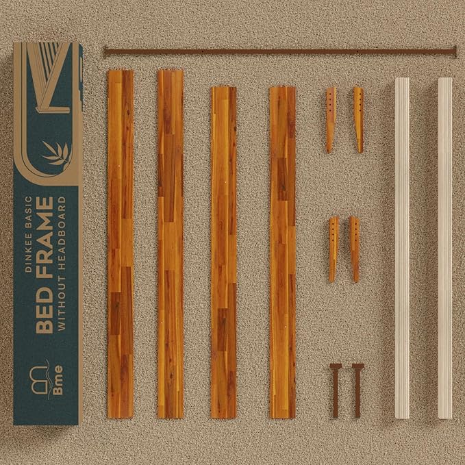 Bme Dinkee 15 Inch Signature Bed Frame Without Headboard - Modern & Minimalist Style with Acacia Wood - 12 Strong Wood Slat Support - Easy Assembly - No Box Spring Needed - Caramel, Full