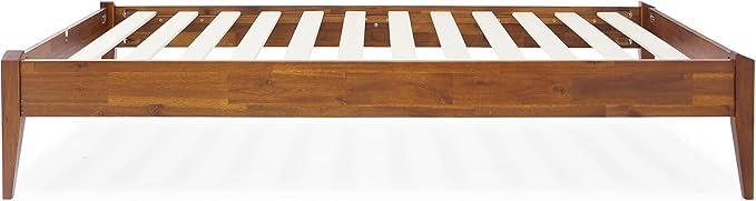 - DURABLE SOLID DESIGN: The solid king bed frame wood and platform bed frame queen without headboard is made from solid wood with a thick wooden frame and tapered leg design for a strong yet elegant feel; Power coating iron frame helps to increase the durability of the product; Supporting up to 800 pounds for King size bed frame wood, Queen wood bed frame, Full wooden bed frame size and 350 pounds for Twin platform bed size