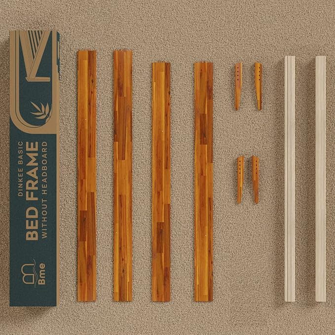 Bme Dinkee Twin Bed Frames without Headboard, Acacia Wood 15 Inch Platform Bed, Slat Support, Japanese Joinery Bed, No Box Spring Needed, Easy Assembly, Minimalist Modern and Bohemian Style, Caramel