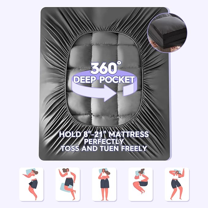 - 【Deep Pocket & Box Quilted】: 360° all-around wrapping design, high elastic pocket protects the mattress in all directions, flat and compliant, and will not shift when you roll. The extended bed skirt design is suitable for 8-21" mattresses, with broad applicability to meet various needs. Box quilting fixed-point process of fixed filling and the surface forms a 3D structure, to ensure the filling is more even, plump, and supportive. It is not easy to deform after long-term use