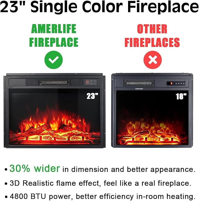 - 【Electric Fireplace】 An updated 23" plug-in electrical fireplace was included. Compared with the 18'' electric fireplace, the updated 23" electrical fireplace has a new appearance, wider dimension, and high efficiency to make the room warm faster.