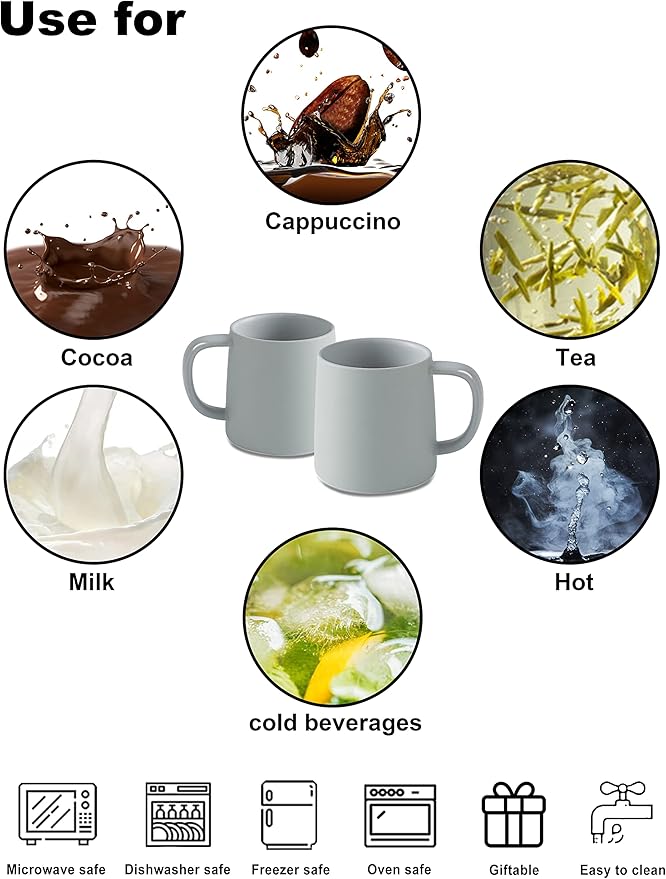 T-WARE 16 Oz Coffee Mugs, Matte Light Grey Mug Set of 2, Ceramic Mugs Coffee, Solid Color Coffee Cups Ceramic
