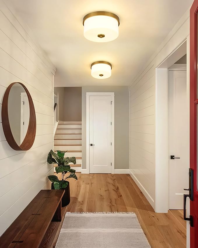 - [Wide Application] Interior flush mount light fixture with elegant and rustic look, is the compliment for any home decor. Popularly used in halls, stairways, entrance, kitchen island, bedroom, bathroom.