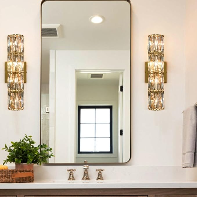 - Wide Applications- The gold crystal sconces wall lighting is ideal for bedside wall sconce, bathroom wall light, mirror vanity wall light, as well as perfect for living rooms, bedrooms, hallways, foyers, staircases, cafes, offices, etc.