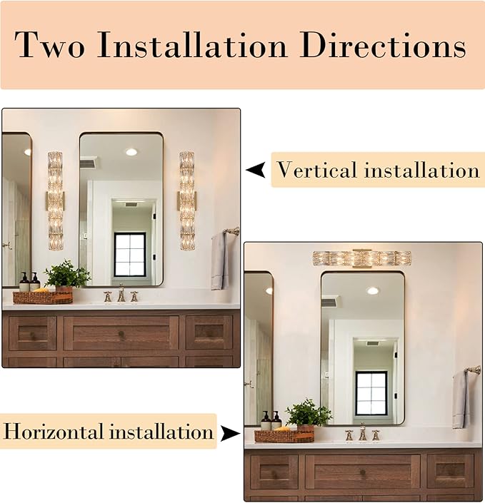 - Easy to Install: Our gold sconce is almost assembled and can be mounted horizontally or vertically as you need. All mounting hardware and step-by-step instructions are included in the package for easily and quickly installing. Just take off the screw on the both side to remove the crystal glass lampshade and replace the light bulbs.