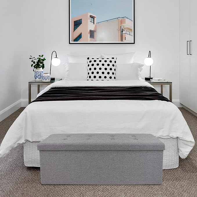 - Versatile Storage Bench: Use this 43-inch storage ottoman as a storage box, footstool, or coffee table. It fits seamlessly into the living room, bedroom, entryway to meet various needs