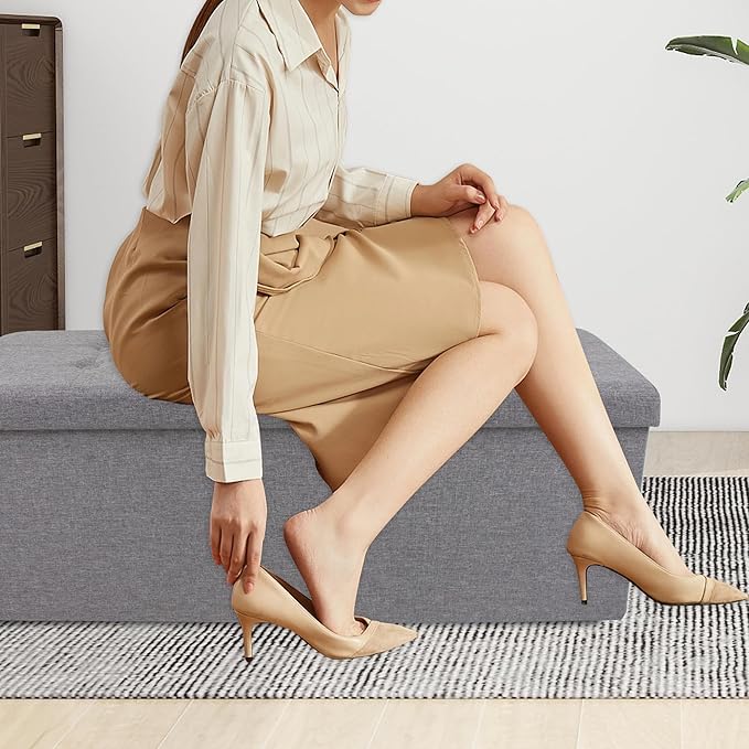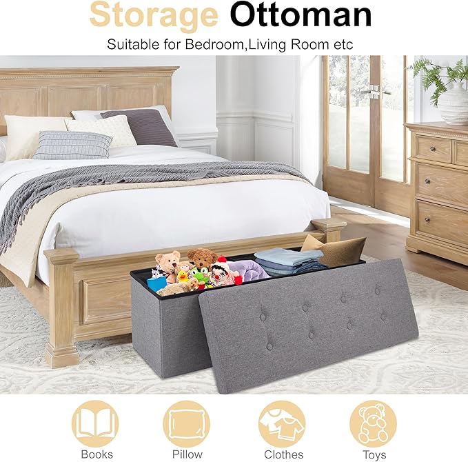 GLAXYFUR 43 Inches Folding Storage Ottoman Bench, Storage Chest, Footrest for Entryway, Living Room, Holds up to 660 lb, Light Grey