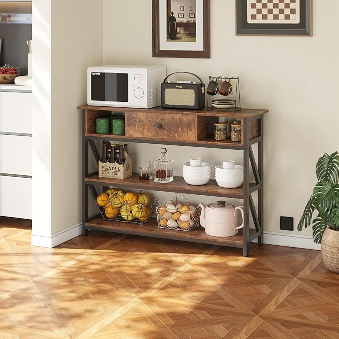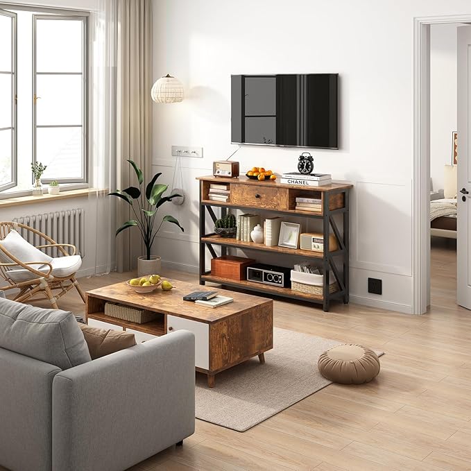 Mexin 39 Inch Console Sofa Table with Drawer, Entryway Table with Storage Shelves, Industrial Wood Hallway Table for Living Room Couch Foyer Kitchen Counter, Rustic Brown