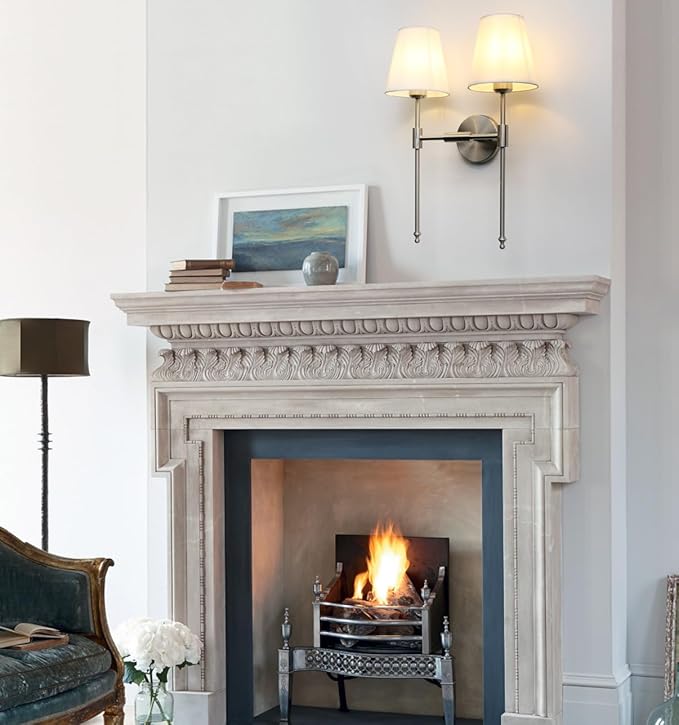 - [Widely Application] Featured a simply elegant arm and a white fabric shade in mid-century style, fabric sconce is infusing soften lighting in all directions also is a beautiful artmestic decoration for all kinds of places, like living room, dining room, kitchen, farmhouse, reading room, hallway, stairwell, bedside, bedroom, reading room and office.