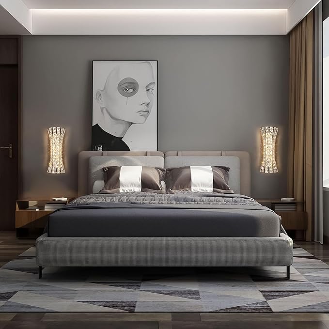 - 【Widely Application】The elegant luxury wall sconces is carefully decorated by hand, and hand-punched,The light emitted by the crystal wall sconce through the K9 crystal is beautiful, just like forming a romantic starry sky around you, bringing you a unique visual experience.It is suitable for stairway,doorway,living room,bedroom,bathroom, hallway,kitchen and dinning room.