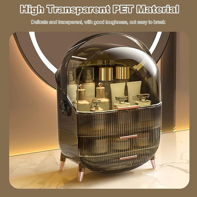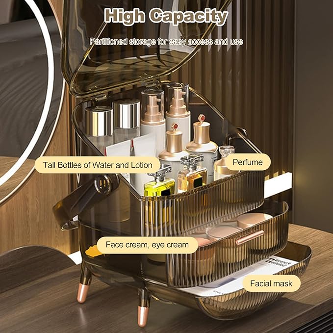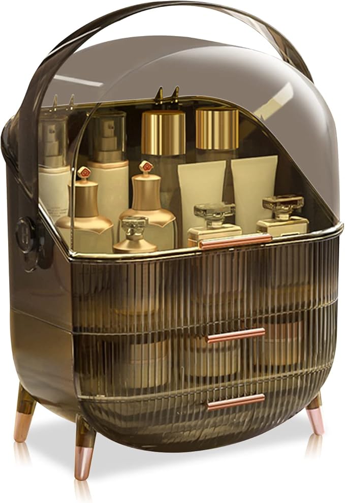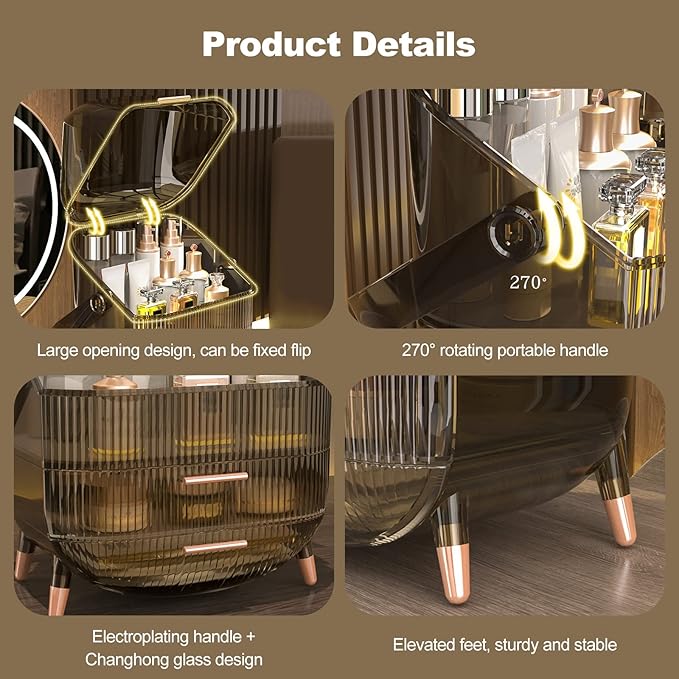 - Practical : This dustproof cosmetic organizer is elegant to effortlessly meet any room decor, you could place it in your bedroom, bathroom, dressing room, bedside table, vanity countertop.There are three retro colors to choose from, retro green, retro yellow and retro gray.