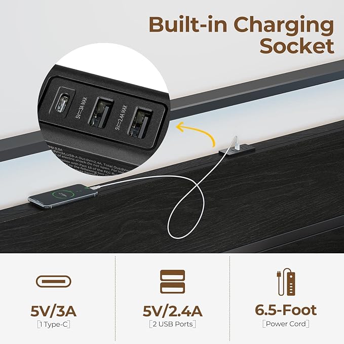 - Bed Frame with Charging Station: Say goodbye to low battery anxiety! This bed frame headboard features a built-in power panel with 2 USB ports and 1 Type-C port, which can totally charge your electronic devices at the same time