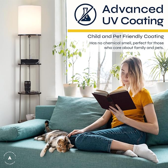 - [Child and Pet Friendly Coating] - Unlike other shelf floor lamps, this product is treated with an advanced UV coating, which means it’s free of any harsh or chemical smells. Confidently light up your rooms while not having to worry about any airborne toxins reaching your pets, kids, and loved ones!