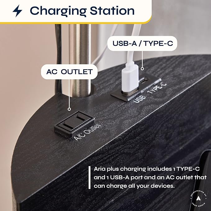 - [All the Charging You Could Need] - This standing lamp with charging station includes 1 USB-C and 1 USB-A charging port and an AC power outlet that can charge all your devices. Our shelf lamp with USB capabilities will simplify your life and beautify your home.