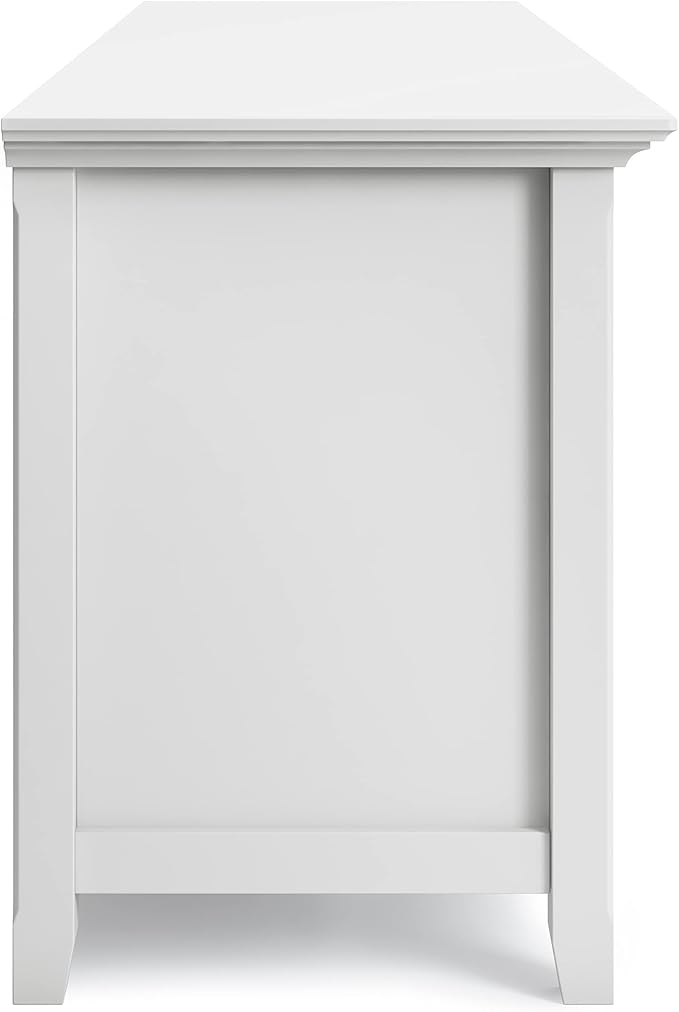 SIMPLIHOME Amherst 72-inch Wide Solid Wood TV Stand in White, Transitional-Style Media Console for Living Room with Cable Management and Adjustable Shelves, Fits 80" TVs