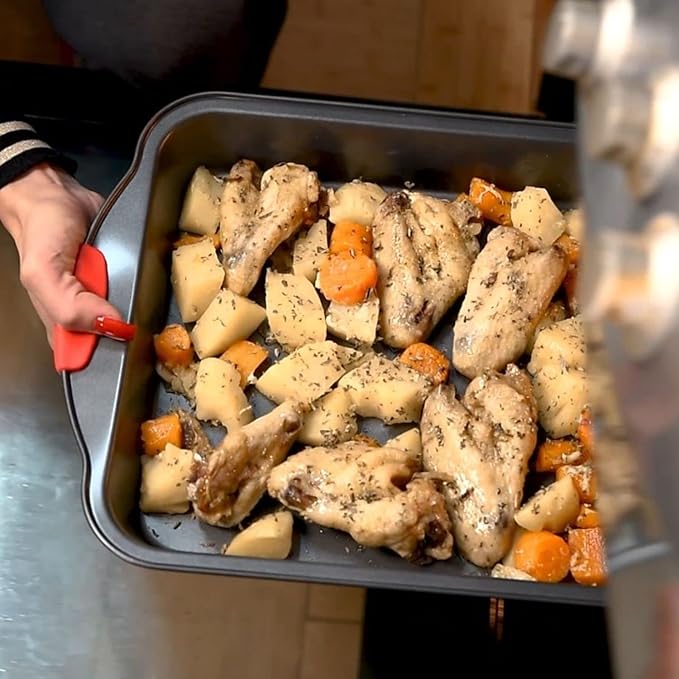 - Safe N Comfort Silicone Handles: The commercial-grade restaurant-quality kitchen bakeware features red silicone grips on all bakeware pans to prevent burns and offer you plenty of solid, comfortable grasp, even with potholders. We also included an extra set of 5 silicone spatulas to help you out with your delicious baking!