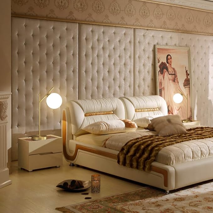 - 【Unique design】The mid century modern table lamp uses a round base that does not take up space, making the overall structure of the table lamp body more stable, solid and pressure-resistant. The glass lampshade is made of high quality material, fired through multiple processes, with high light transmittance and no radiation.