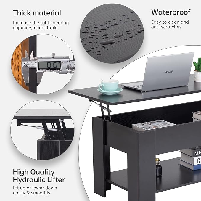 - 👍·LIFT-TOP Design: The tabletop of this coffee table can be effortlessly lifted up and forward to create a workspace when sitting on your sofa. The high-quality metal mechanism enables the tabletop to be lifted up or lowered down easily and without noise.