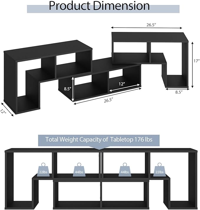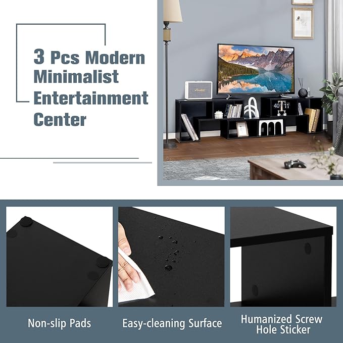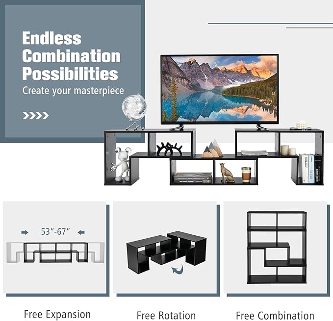 - Wide Application & Easy Assembly: With adjustable size and modern appearance, the freely-combined shelf unit can be used as a TV console, a bookcase or a display stand. Furthermore, the setup of the TV console stand is also a breeze, as long as you follow the steps on the assembly instruction.