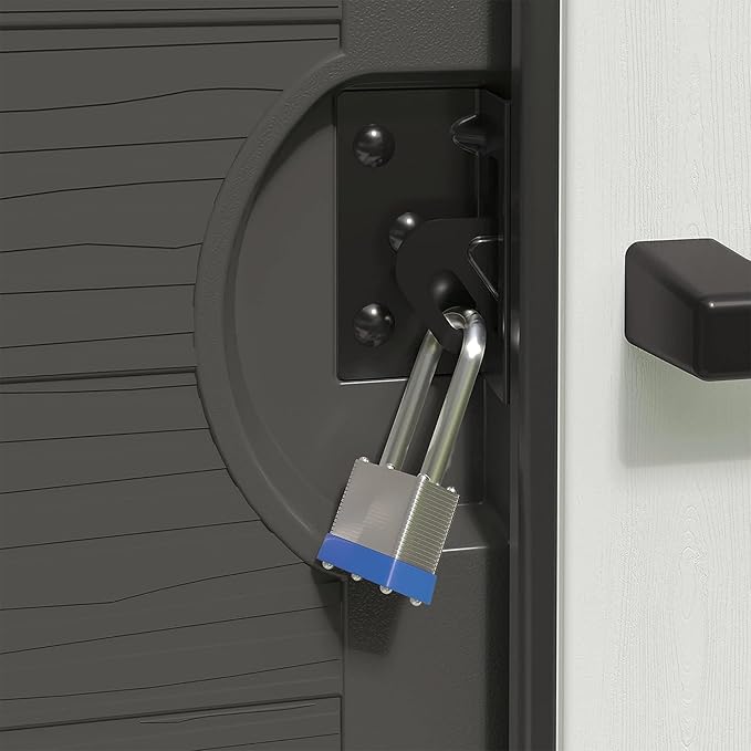 - KEEPS CONTENTS PROTECTED: Stylish sliding barn door is pad-lockable to prevent theft and unauthorized use (padlock not included), and the steel door frame and slide rail system restrict tampering