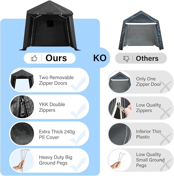 - 【Various Use】✔The portable storage shelter can be a motorcycle storage shelter, ATV storage shed, bike storage tent, or small vehicle garage shelter. It is also suitable for small lawnmowers, firewood or any other gardening tools.