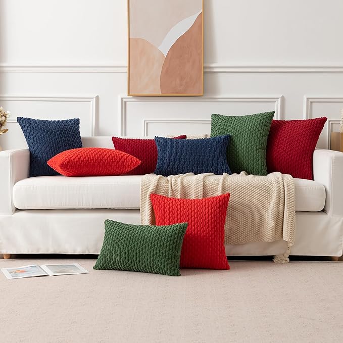 Kevin Textile Throw Pillow Cover Striped Corduroy Plush Texture Velvet Euro Cushion Cover for Bed 24 x 24 inch (60cm) Set of 2 Navy Blue