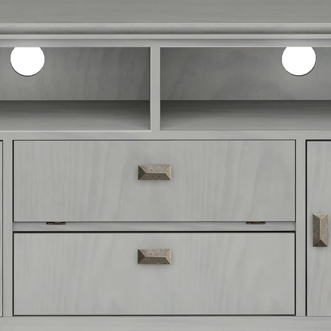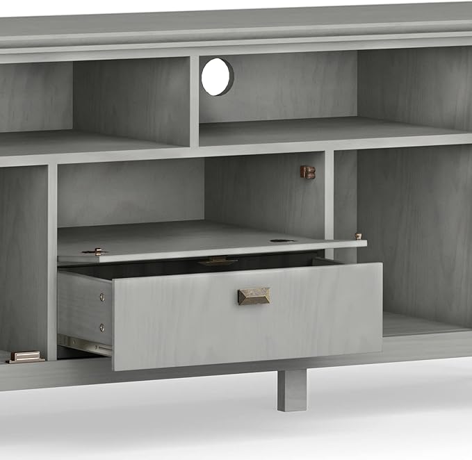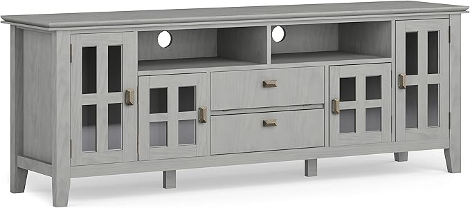 SIMPLIHOME Artisan SOLID WOOD 72 Inch Wide Contemporary TV Media Stand in Fog Grey for TVs up to 80 Inches, For the Living Room and Entertainment Center