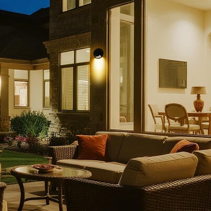 - Modern Design:The sleek round design of our up or down LED wall lights with a style look,black paint finish to add a modern touch to your indoor or outdoor space decoration.They cast light in up or down directions according to the different environment and atmosphere,like landscape,pathway,fence,deck,well,bedroom,then enjoy your time!