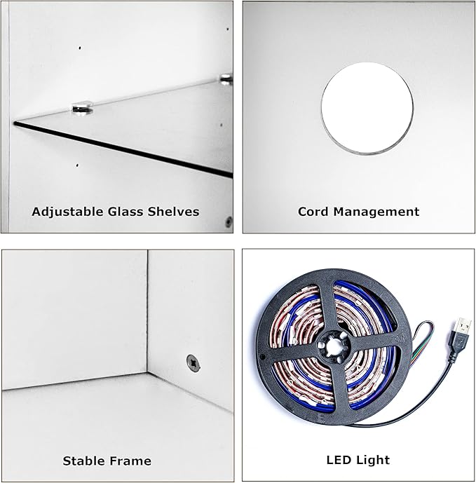 - [Sturdy & Durable Material] The entertainment center is made of qualified P2 class particle board-durable for long lasting use, tempered glass shelves designed with 3-level adjustable height can change the size of cabinet for placing DVDS, CDs, video games, book and etc. The matching fireplace is made of black sturdy metal and tempered glass, provides a high quality of life.