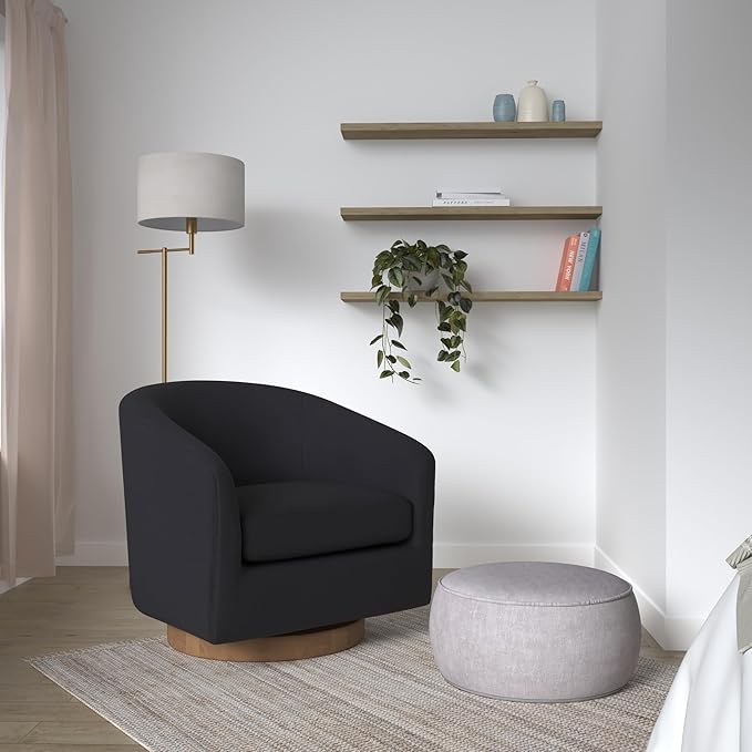 - 360-Degree Swivel - Designed with a sturdy swivel base and refined wood accent details, this chair allows for smooth and effortless rotation.