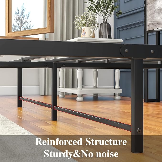 - 【Durability & Stable queen Size Bed Frame】 - Metal Platform bed frame queen made of strong metal connecting frame and tightly arranged heavy-duty metal steel slats to ensure the durability and stability of the bed frame queen size and provide optimum support for all types of mattresses without the use of a box spring.