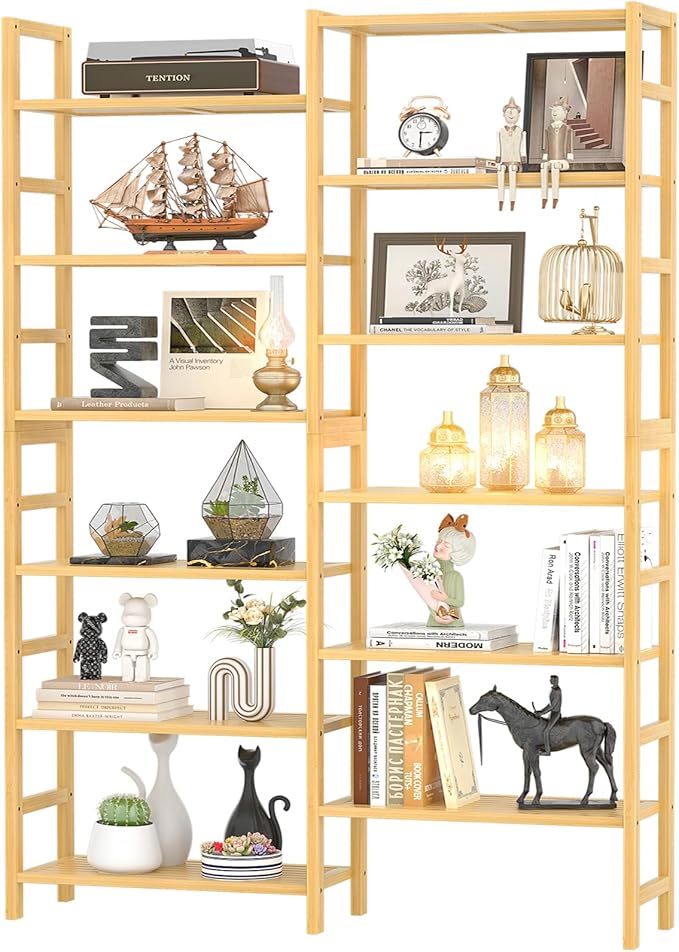 - Massive Storage Space: Dimensions are 41.14” W x 72.44” H x 10.63” D. The 6-tier double wide bookshelf features 12 individual open shelves, providing ample space for your books, collectibles, decorations, potted plants, photo frames, and more. Each layer can hold up to 44 lbs, for a total weight capacity of 528 lbs.