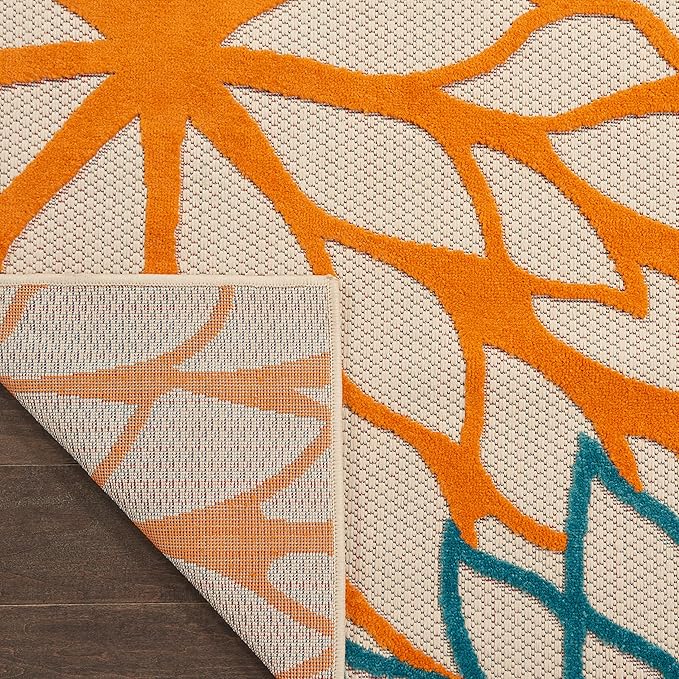 - Floral indoor/outdoor rug brings a cool tropical vibe to your home