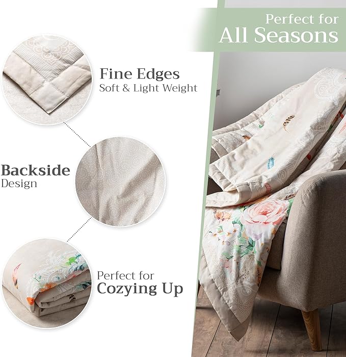 - Package Includes: 1 throw blanket 50x60 inches, featuring a 100% cotton exterior and plush polyester filling. Designed in Europe and expertly crafted in India, it offers lightweight warmth and breathable comfort