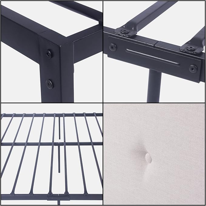 - Sturdy Construction - 9 Bed Legs and 16 Thicken Tube Slats for Max Capacity of 500lbs; Refined Tufted Foaming Cushion for Head Board against Movement and Shake - NO SQUEEK NOISE; 4-Inch Gap Tensity for Your Mattress and Cushion