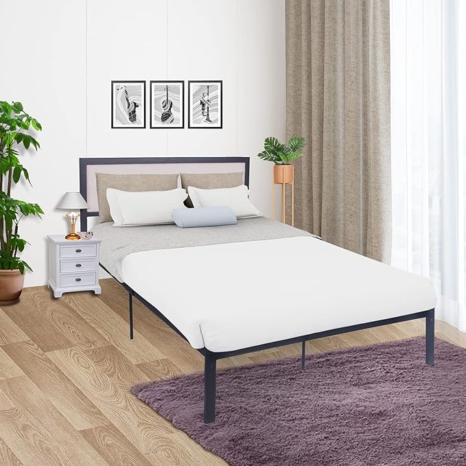 Metal Bed Frame Queen Size Platform with Head Board Mattress Foundation Heavy Duty Metal Slats for Bedroom Students Kids for Hotel Motel Storage Under Bed 500lbs (Black Metal, Queen)