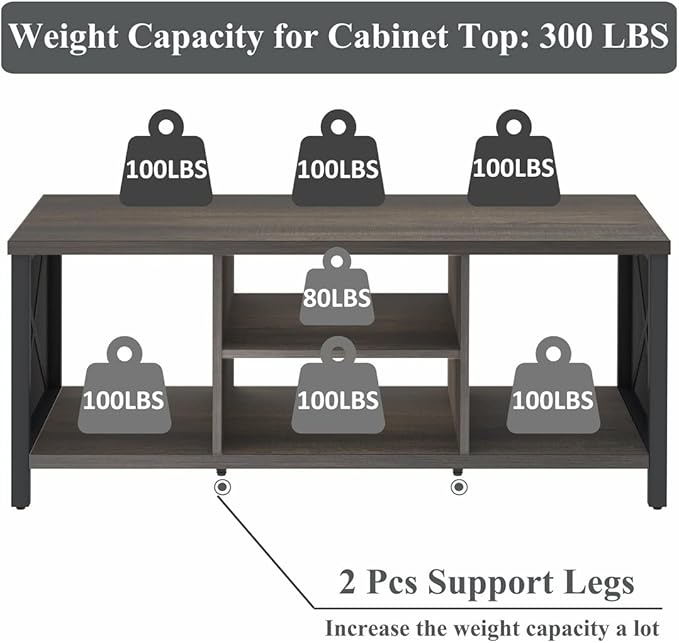 - [High Weight Capacity]: Thanks to the high-grade material and well structured design, this rustic coffee table stands very stable. 1 Inch Chunky table top and 2 support legs under bottom shelf increase its’ weight capacity a lot, this coffee table has 300 lbs of weight capacity for both table top and bottom shelf.