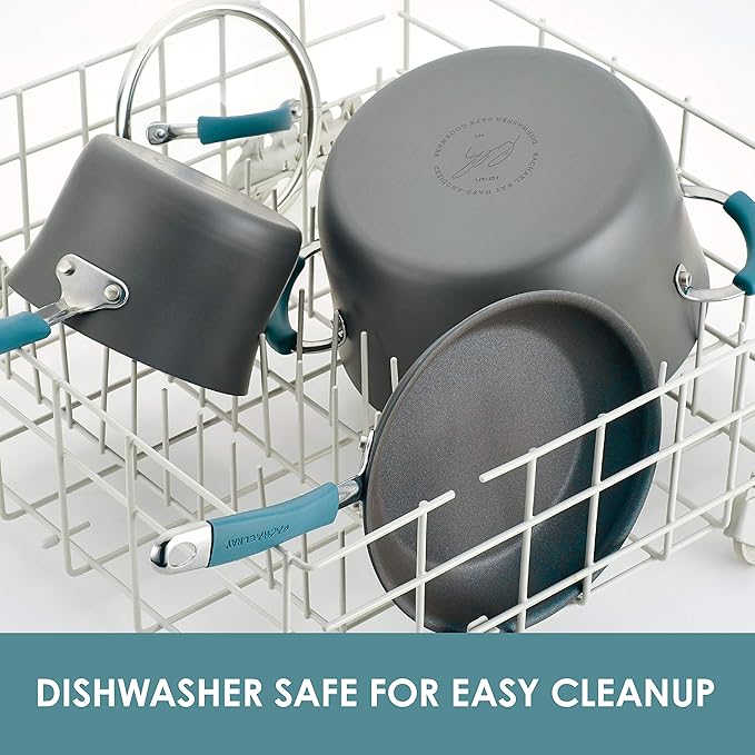 Rachael Ray Cucina Hard Anodized Nonstick Cookware Pots and Pans Set, 12 Piece, Gray & Kitchen Tools and Gadgets Nonstick Utensils/Lazy Spoonula, Solid and Slotted Spoon, 3 Piece, Marine Blue