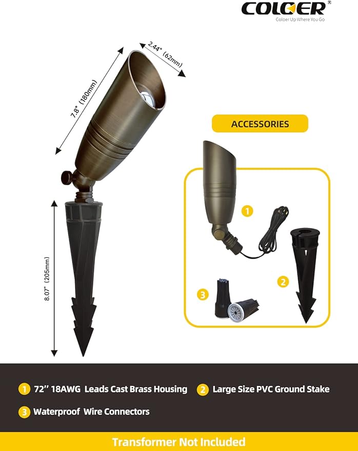 - Replaceable Bulb: The COLOER bronze landscape spotlight uses a design with separate light fixture and bulb, which offers a longer lifespan compared to the non-detachable integrated design. You can replace the bulb without having to replace the entire fixture just because the bulb is broken. COLOER landscape lighting offers a lifetime warranty(painted finish is 10 years) for the light fixture.