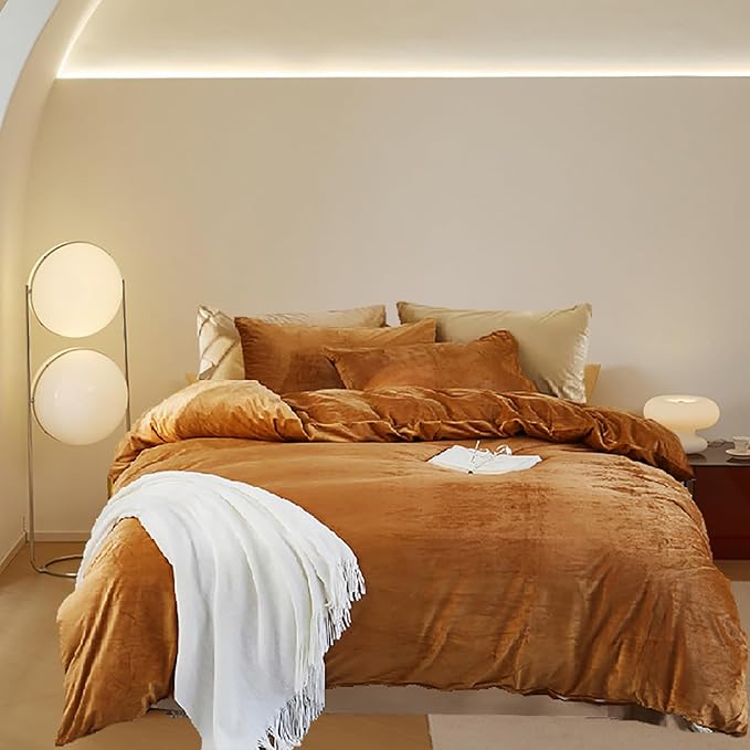 - đ¸ăSimple and Versatileă ďźCottonight fashion rust pumpkin velvet comforter is solid color, adding a hint of elegance to any color scheme or aesthetic. Choosing our comforter to decorate your room brings you a distinctive feeling of elegance. This minimalist style comforter can easily match all your room style, bedroom, kids' room, or guest room. It also will add an extra layer of warmth while watching TV, reading, relaxing, or sleeping