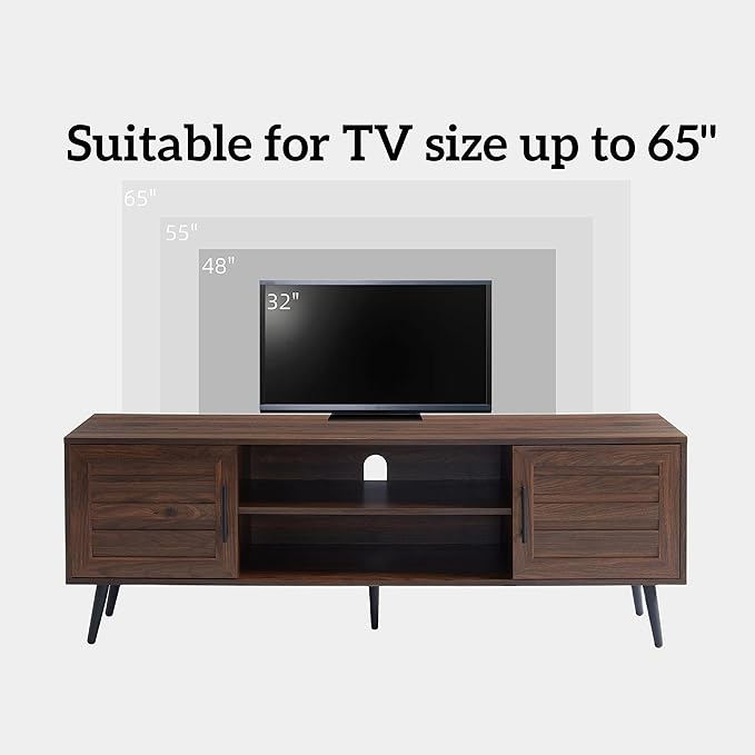 Mid Century Wooden TV Stand Entertainment Console with Open Shelving and 2 Cabinets for Televisions up to 65 Inches(Dark Walnut)