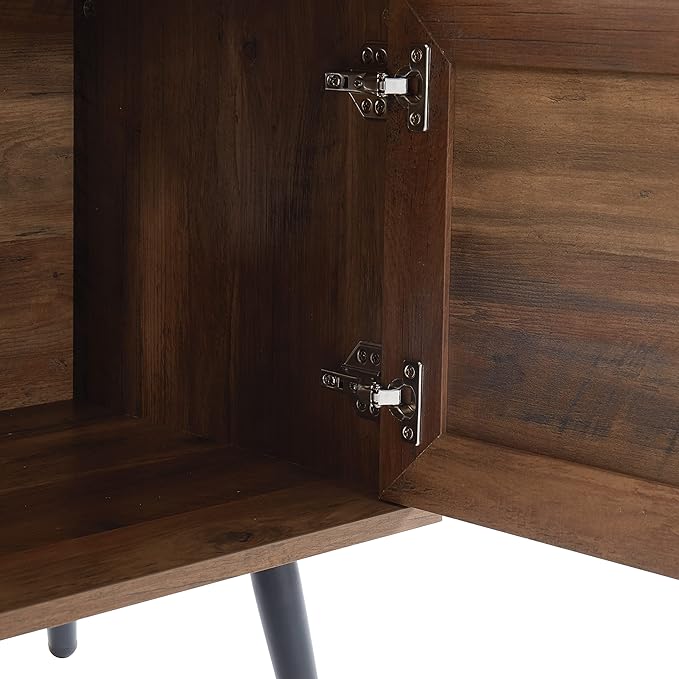Mid Century Wooden TV Stand Entertainment Console with Open Shelving and 2 Cabinets for Televisions up to 65 Inches(Rustic Oak)