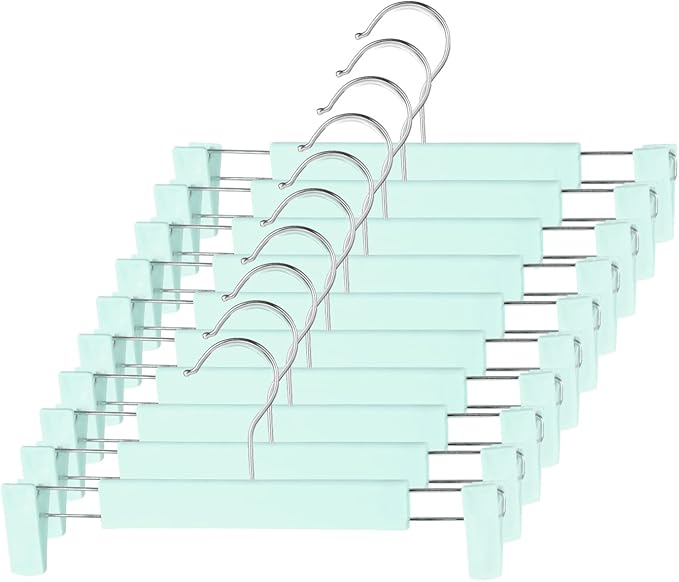 10 Pack Pants Hangers with Adjustable Non-Slip Clips Anti-Rust Hanging Hook for Trouser,Skirts,Jeans,Clothes Hangers Green