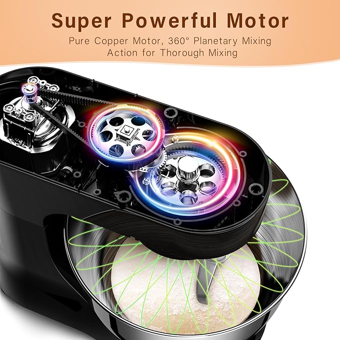 - Safe &Sturdy Bowl: Made of food-grade stainless steel, it ensures the health of the whole family; Large 4.8QT capacity meets daily kitchen requirements; The bowl can be fixed to the base, which makes it stay steady during mixing work; Considerable design of a handle will facilitate your operation; With suction cups on the bottom of the base, the kitchen mixer won’t move all over the counter