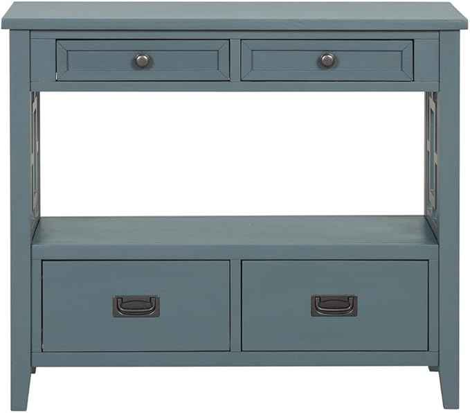 36 Inch Country Farmhouse Console Table with 4 Drawers and 1 Storage Shelf Pine Wood Material for Entryway Entrance Living Room Bedroom Hallway Kitchen (Blue)