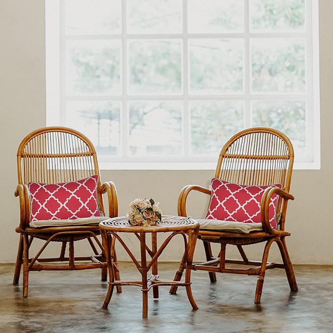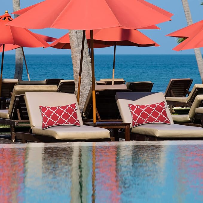 JMGBird 12×20 Inch Outdoor Lumbar Pillows Pack of 2 Waterproof Throw Pillows with Insert Rectangular Decorative Garden Cushion for Home Furniture Patio Coach Sofa (Red)