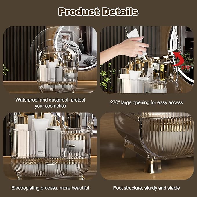 Ergocar Galatée Portable Retro Series Multi-Function Make Up Case Dustproof Cosmetic Storage Box,Cosmetics Skin Care Products Jewelry Organizer Finishing Box - High Transparency + Lipstick